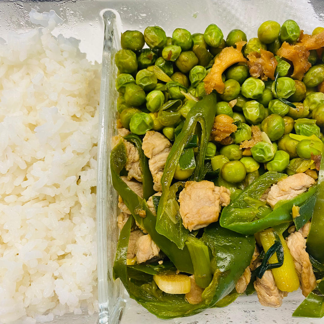 五花肉炒蒜苔,蒸玉米