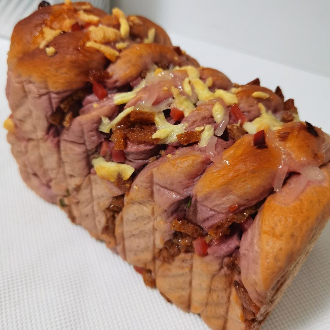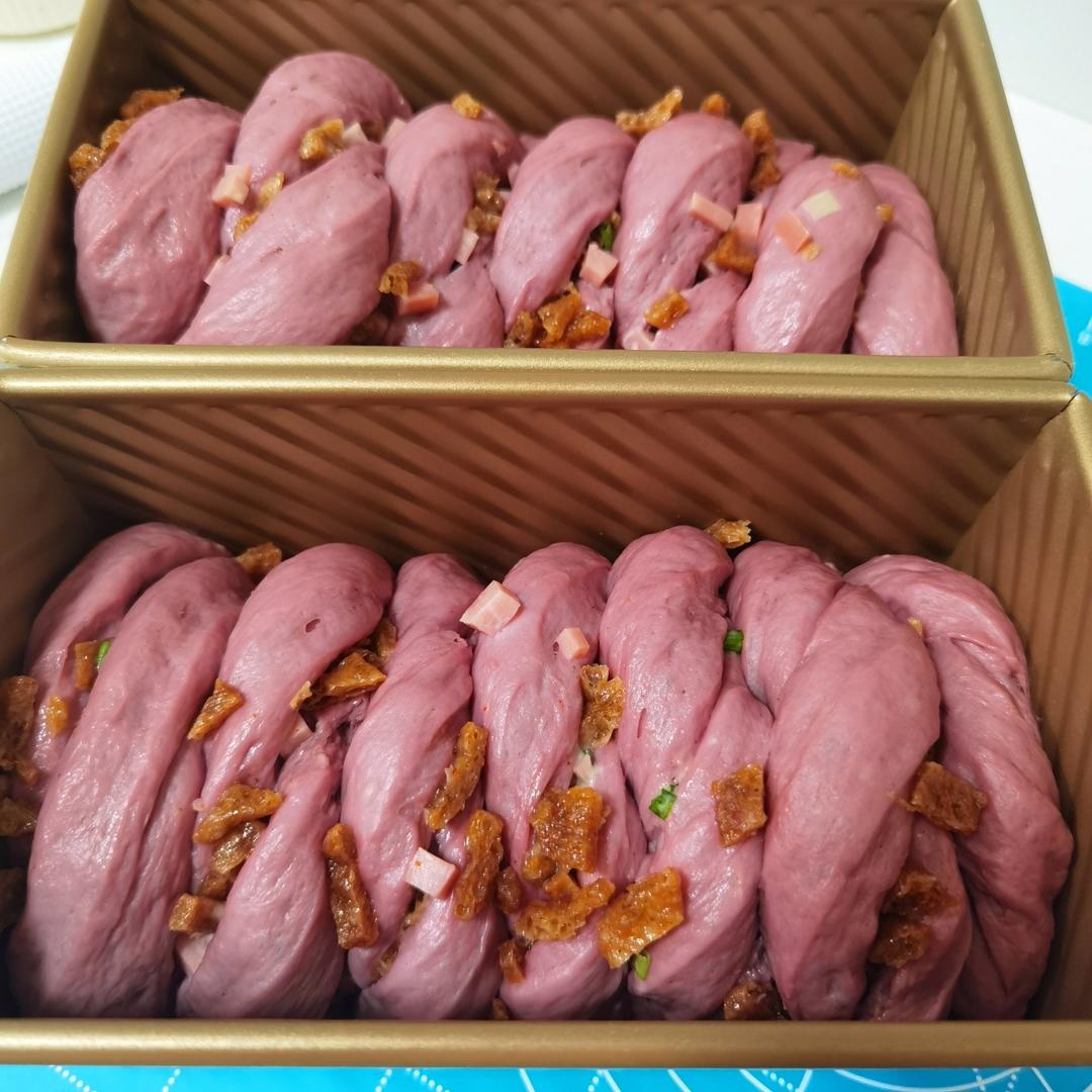 做两个素肥牛火腿紫薯吐司,融合了太多东西,可以完成真不错,夸夸自己真棒!