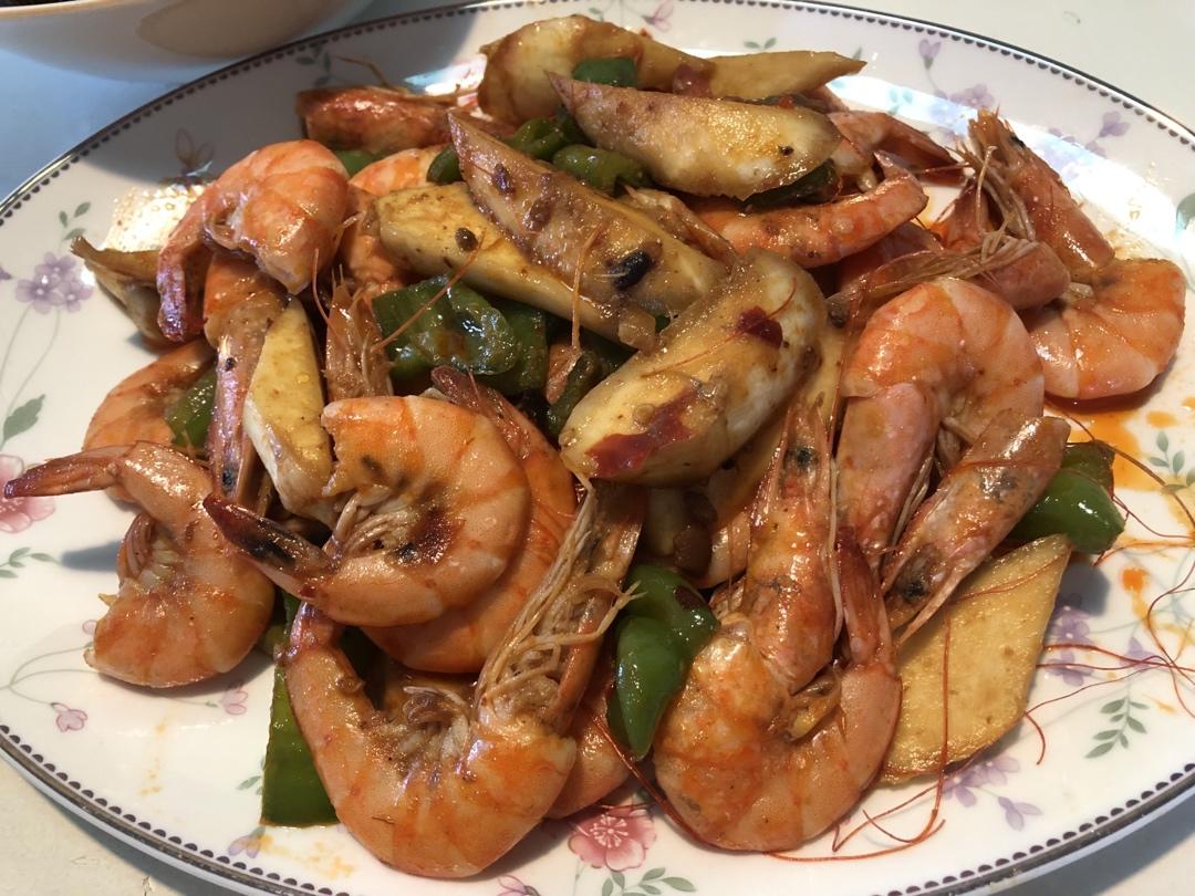 放了茭白和青椒,蔬菜可以吸收白虾的虾汁。