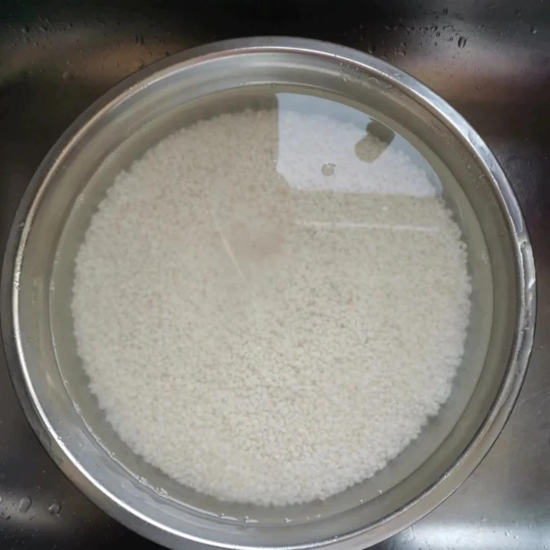 约2斤糯米左右淘至清水,泡4小时以上 ,淘米水留着浇花不错,提前把枣洗干净备用 ,模具里铺上布一层米一层枣再一层米,锅底...
