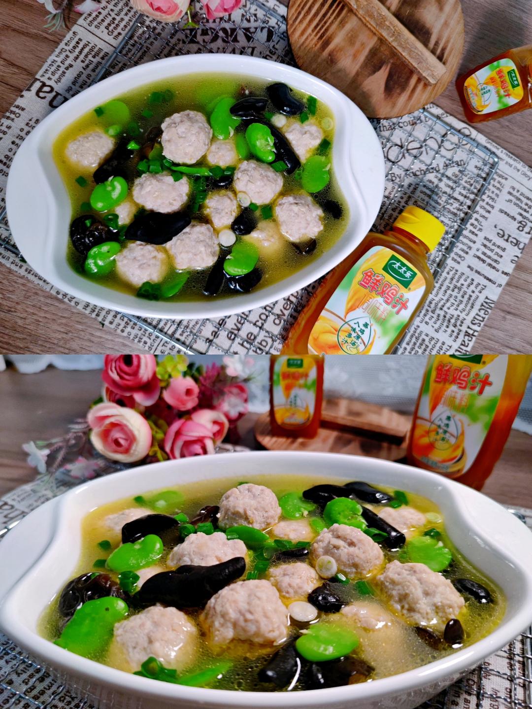 鸡汁蚕豆木耳肉丸汤