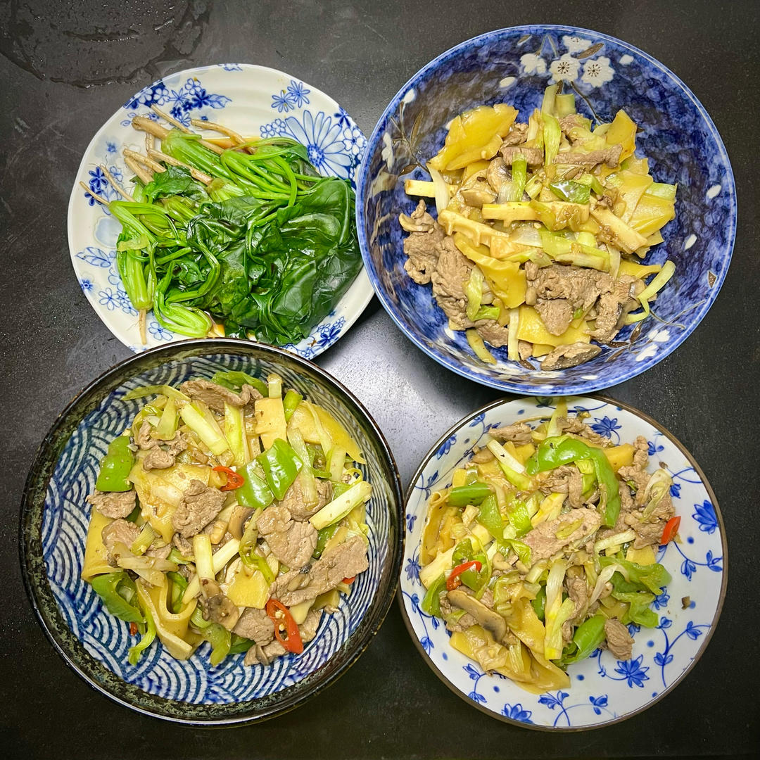 大年初一大杂烩,韭黄、春笋、口蘑,还有两种辣椒(薄皮青椒和小米辣都好辣🥵),简单又丰盛!