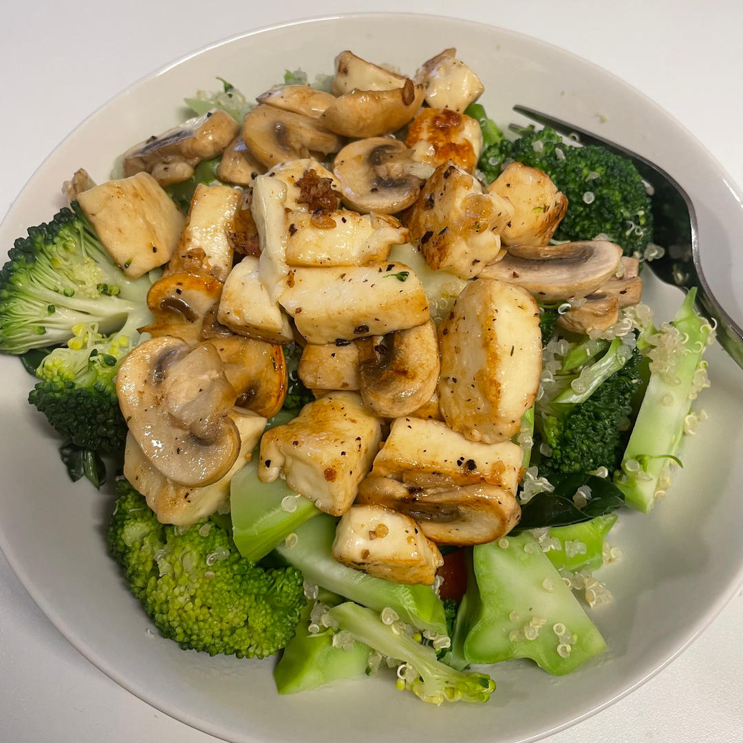 终于把去年买的quinoa做了 很不错 halloumi煎得也很好吃 要不是在uk的沙拉...