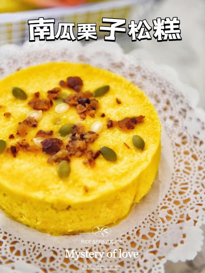 南瓜栗子松糕 刚出锅热气腾腾的南瓜栗子松糕,泛着南瓜幽幽的香气,浓浓的米香和Q弹回甘的口感,绝对是美妙的味觉经验。