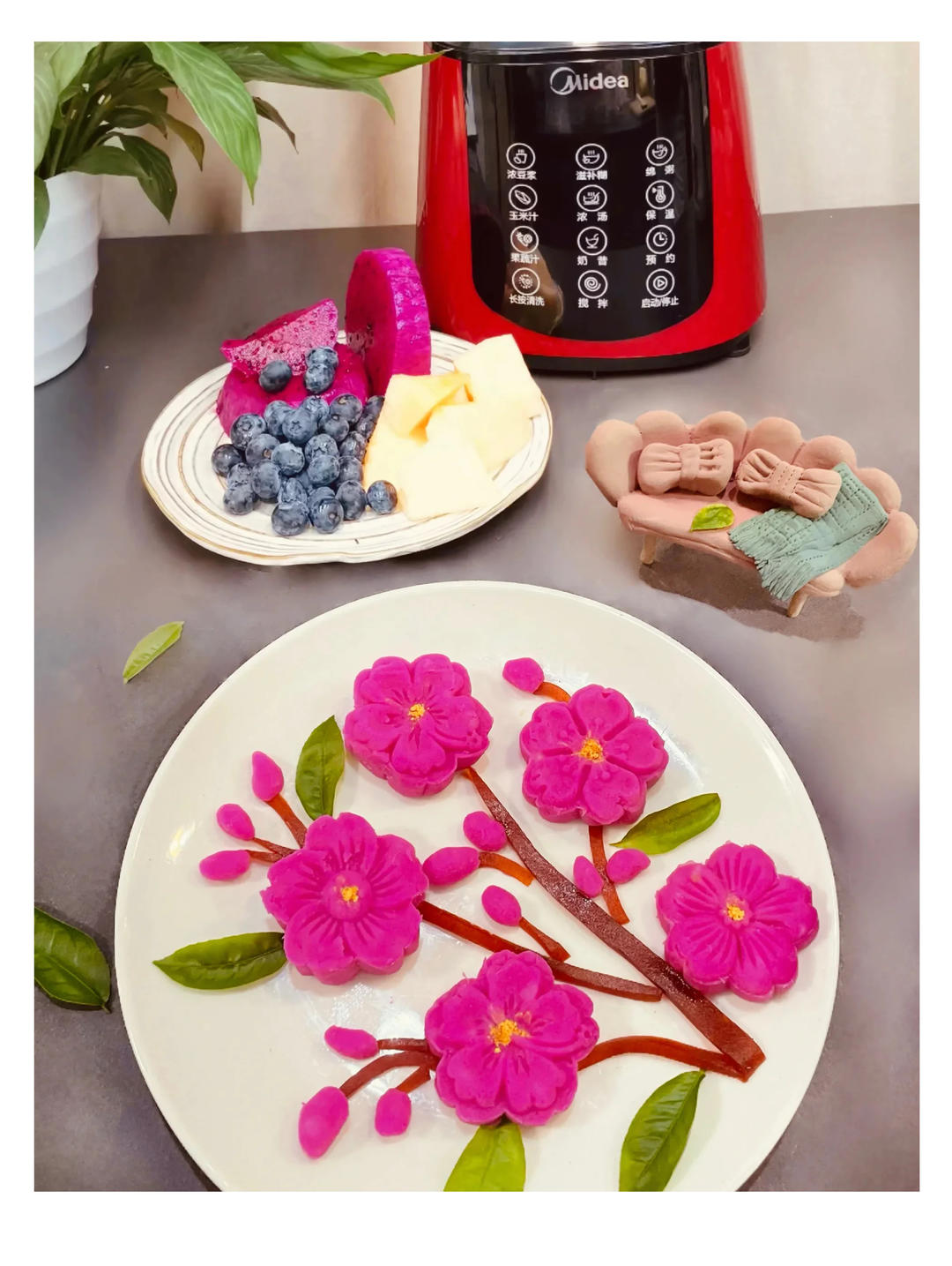 梅花山药糕,很惊艳的颜色。用美的破壁机榨的火龙果汁特别细腻顺滑,做出来的山药糕丝滑绵密,好看更好吃😅#早餐•2022年1...