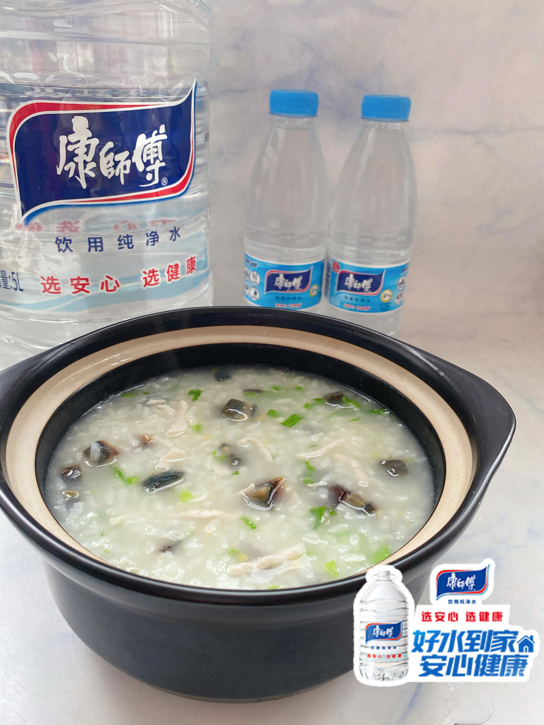 美好的一天从早餐开始……好心情吃出来!好水熬好粥,康师傅饮用纯净水,国家专利,是符合国际标准的高品质用水,熬...