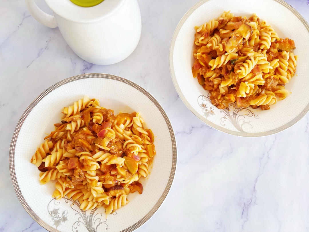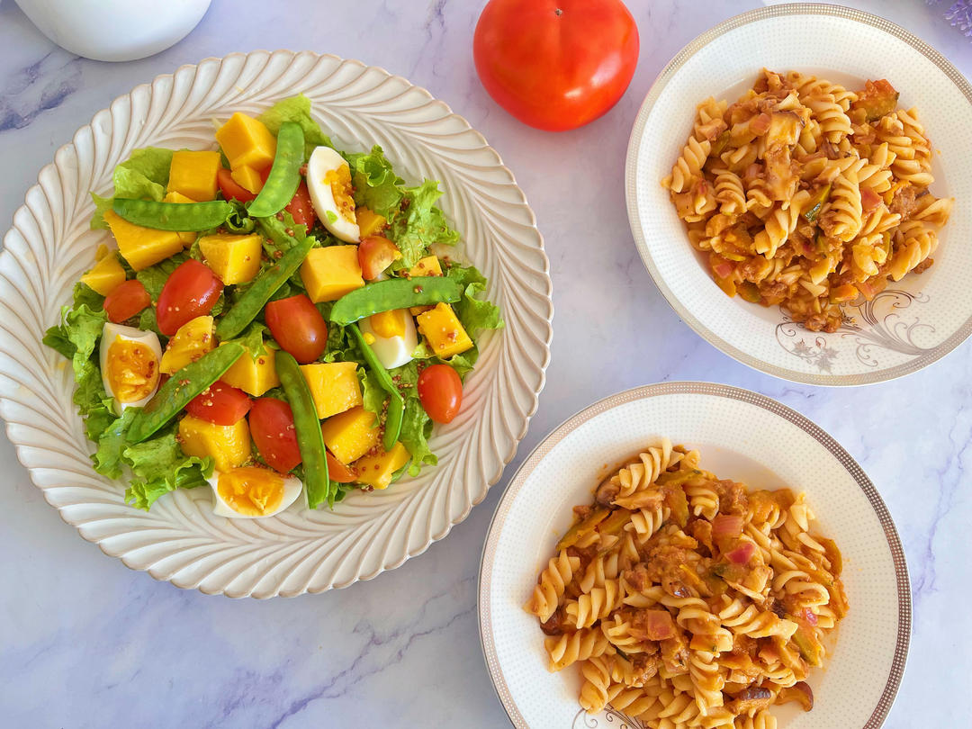 早餐:南瓜番茄意面、芒果沙拉
