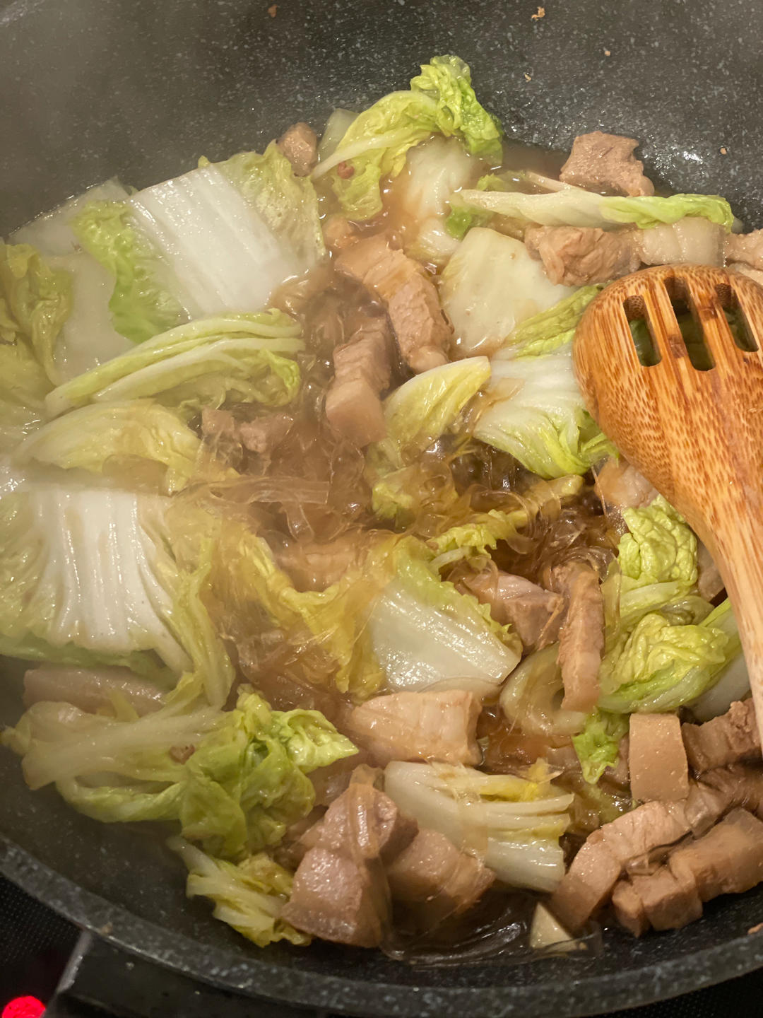 放了花椒和干辣椒,味道很好。没放糖所以变成了醋溜包菜