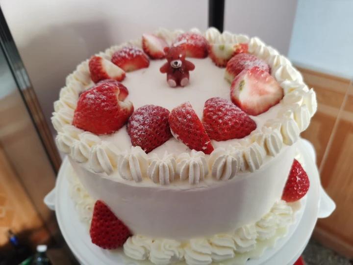 今日份草莓奶油蛋糕,夹心是芒果和巧克力豆~