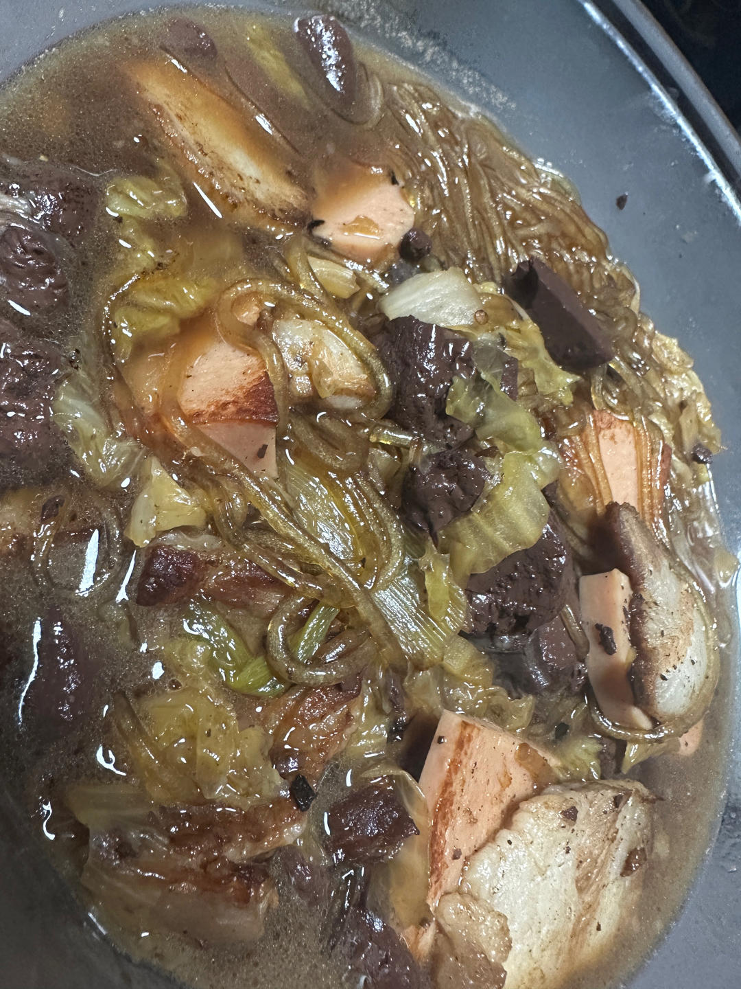 第一次网购血肠,做了杀猪菜,还不错,不腥。