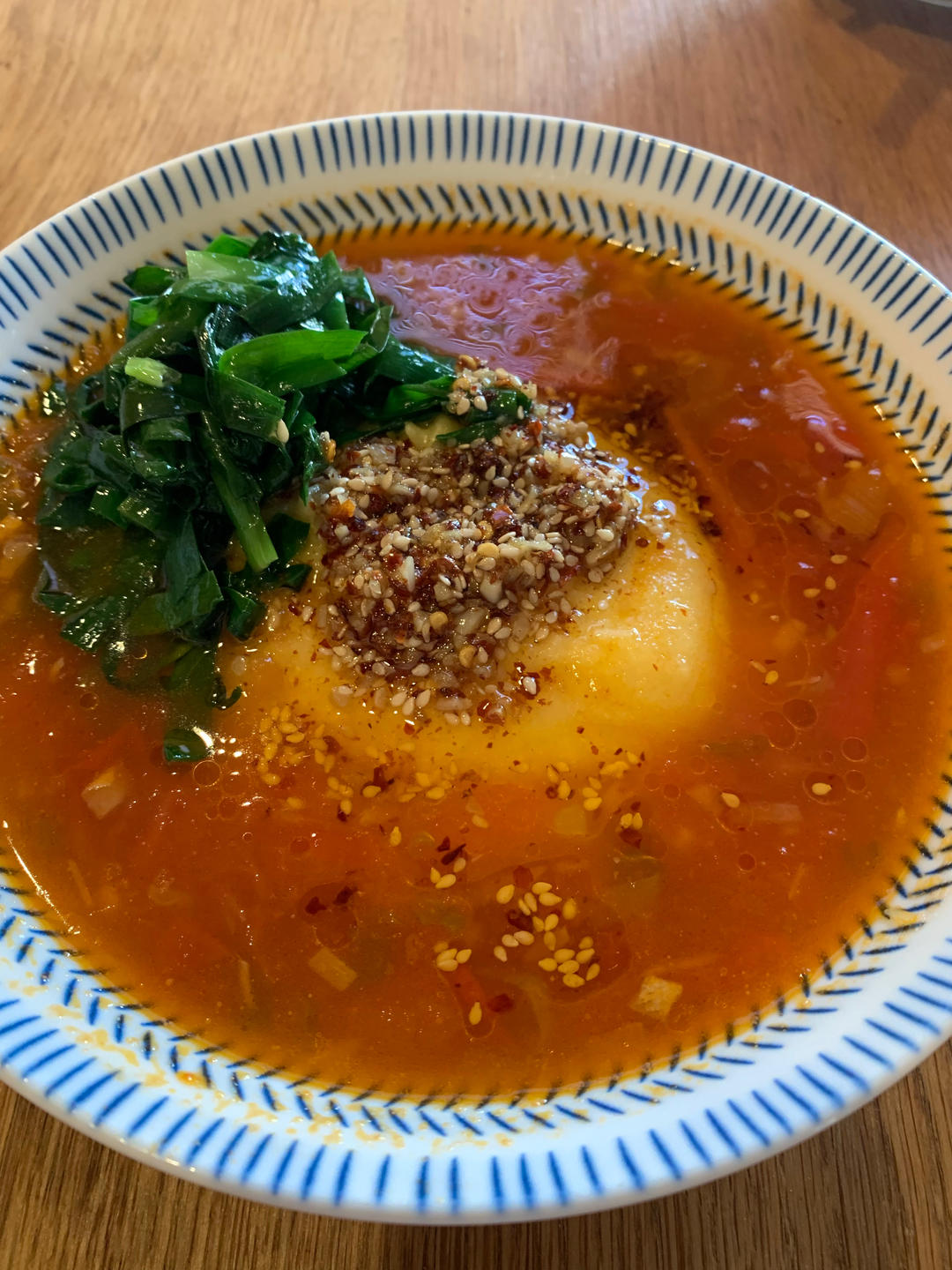 买了墨西哥的玉米面,好像有点粗?第一次吃搅团,口感有点像凝固的小米粥或者煮烂的粽子😭汤底...