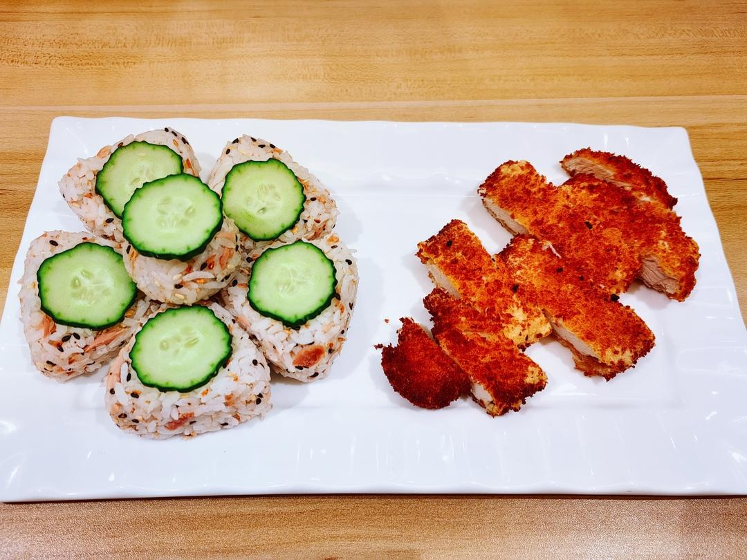 三文鱼青瓜寿司,炸鸡排!