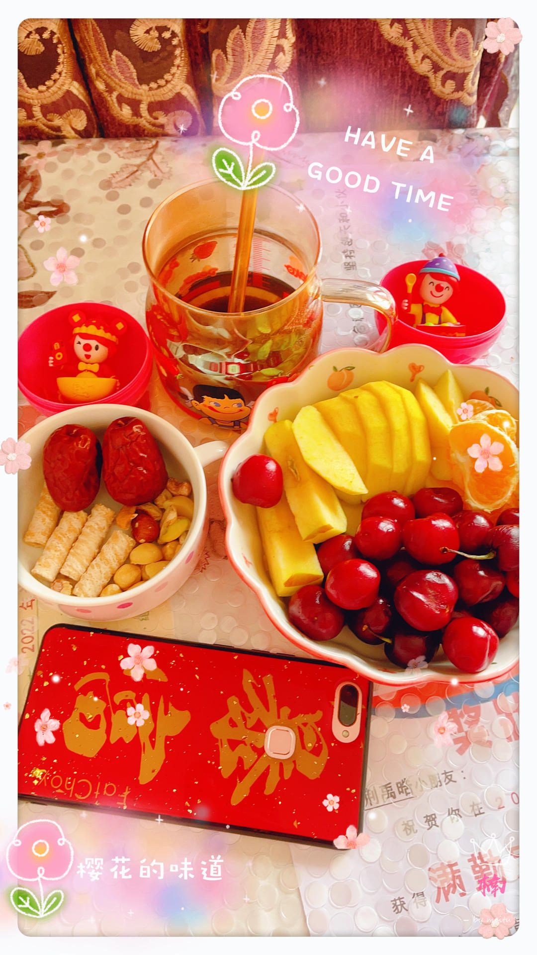 ☕➕🧘➕🥢腿,练完吃份水果🍒🍎🍊没炫完,吃点坚果感觉很舒服,以后就...