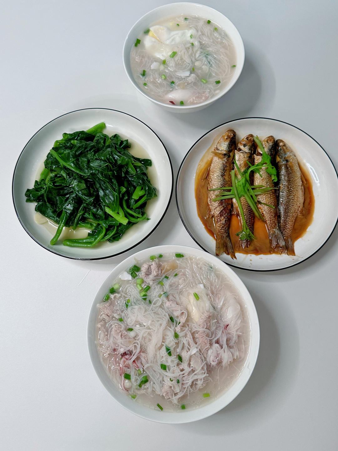 雪花肉鱿鱼鸡蛋汤粉,关尖鱼,溺菜