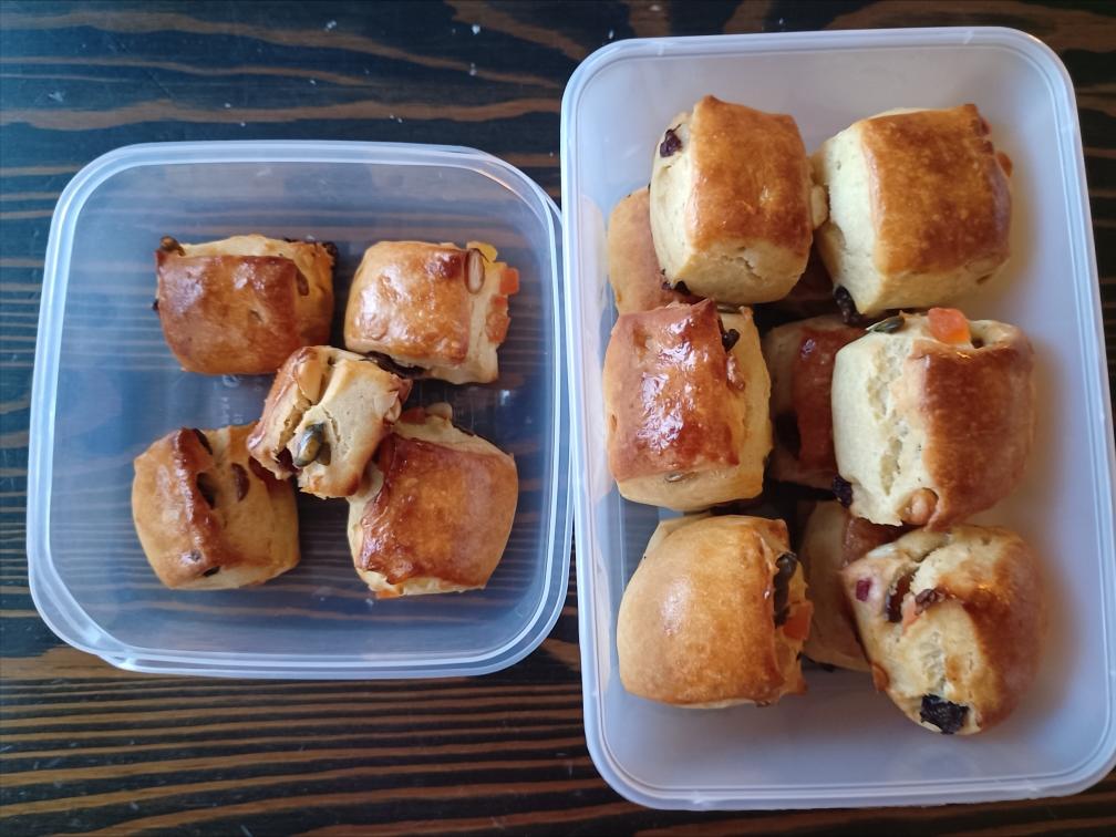 只有酵母和高筋粉,买的一包果干果哺,找啊找,找到了这个高筋粉酵母版司康,就着食材,早上...