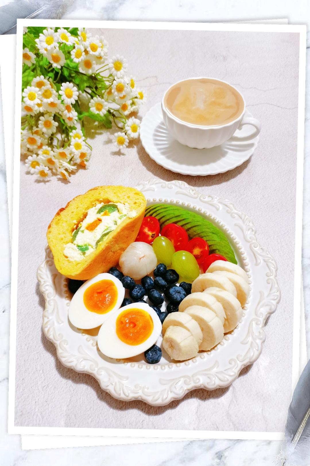 青梅百香果芝士软欧包 水煮蛋 牛油果🥑 荔枝 樱柿 葡萄🍇 蓝莓🫐...