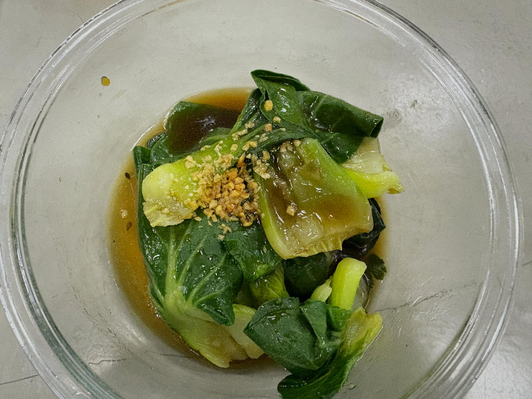 时间有点紧,随便加了点油醋汁,芝麻油和蒜头酥,味道还不错……