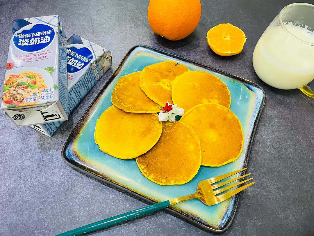 玉米松饼🥞加入雀巢鹰唛炼奶和雀巢淡奶油,奶味十足,松软香甜。