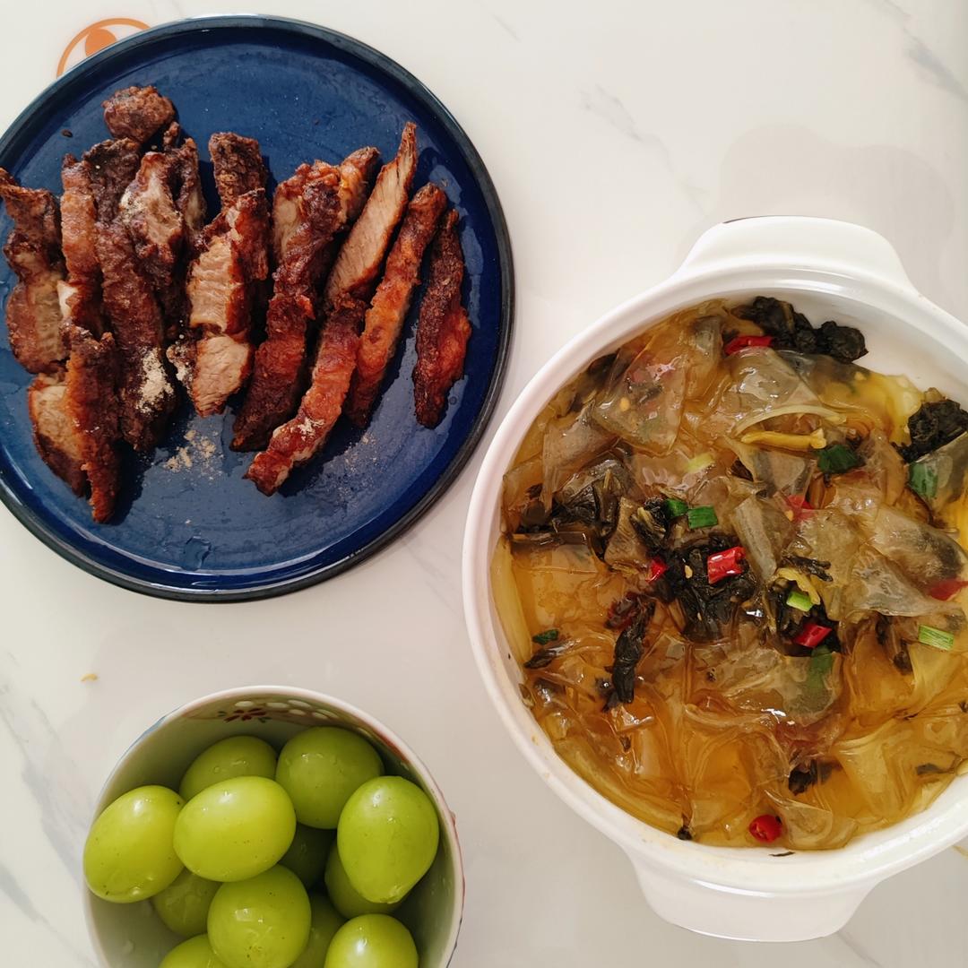 寄几炸的南乳酥肉 酸菜炒拉皮