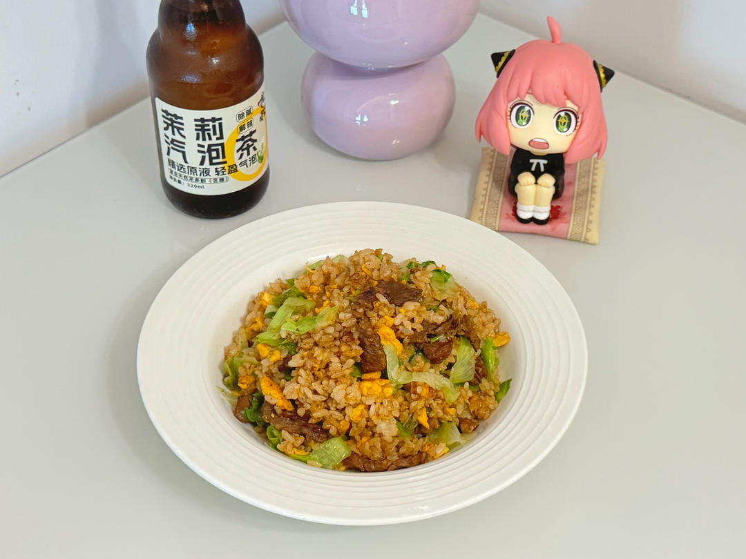 生菜牛肉炒饭&茉莉气泡茶