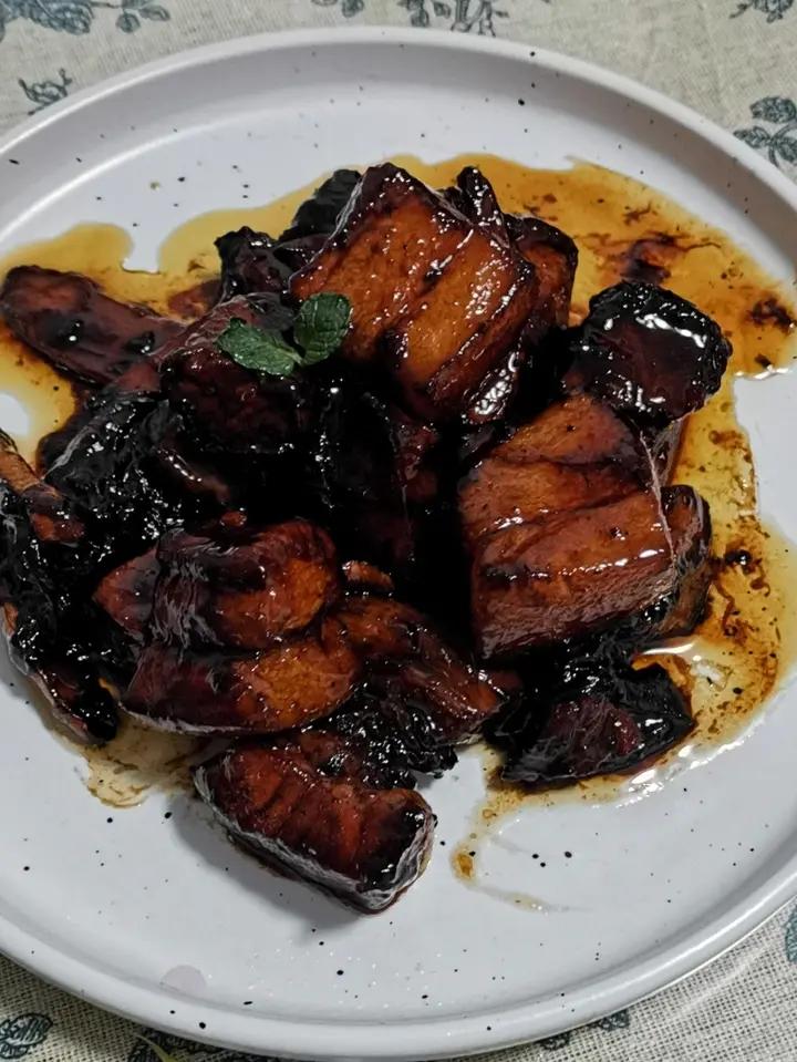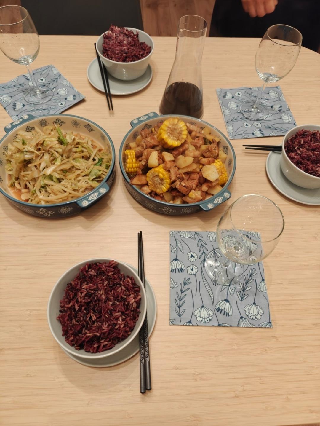 素炒白菜&红烧肉&紫米饭&红酒