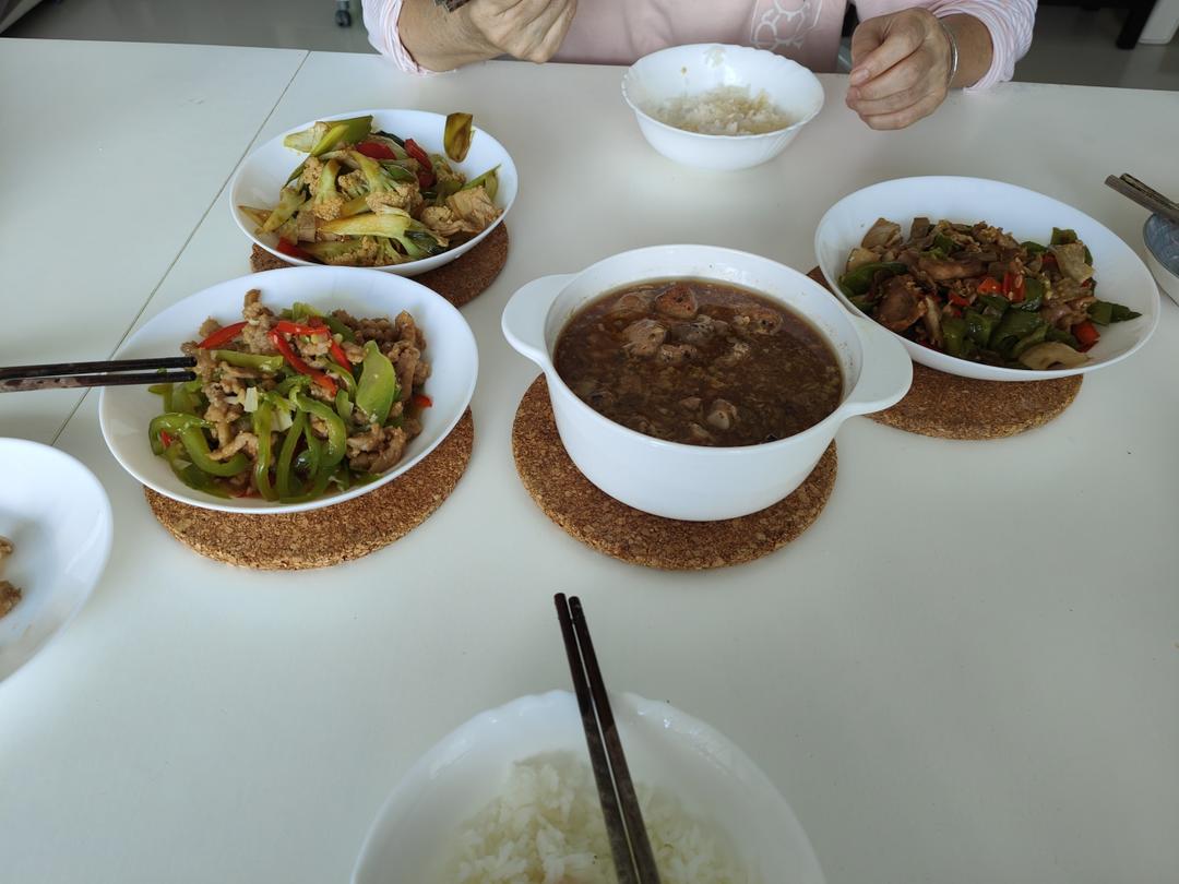 上午给娃上课,午餐昨天做的排骨加上订餐,够我们三人吃一天了。