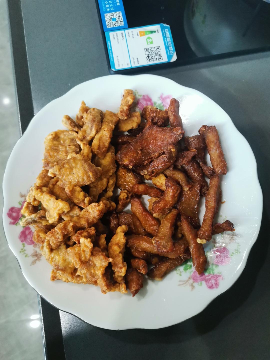 深色的是用生抽+小酥肉粉+鸡蛋空气炸锅15分钟,太咸太干