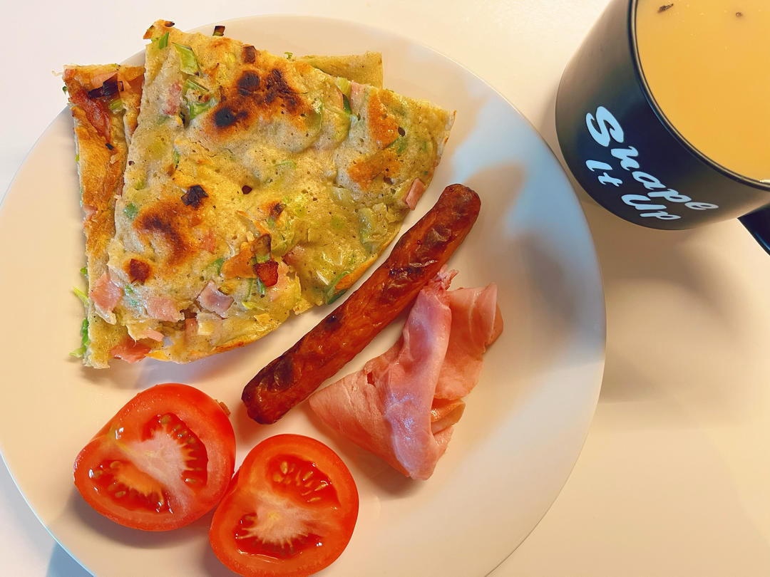 鸡蛋煎饼,燕麦奶茶