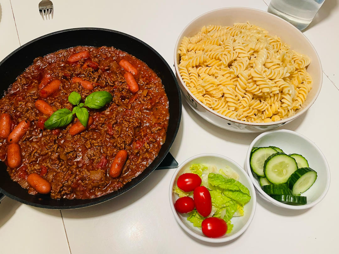 工作日晚餐最方便的就是肉酱意大利面🍝啦!😊