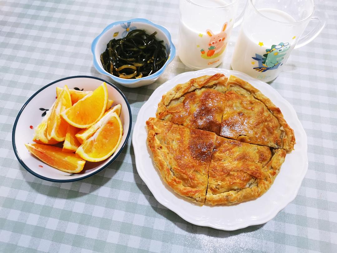 早: 牛肉馅饼+牛奶