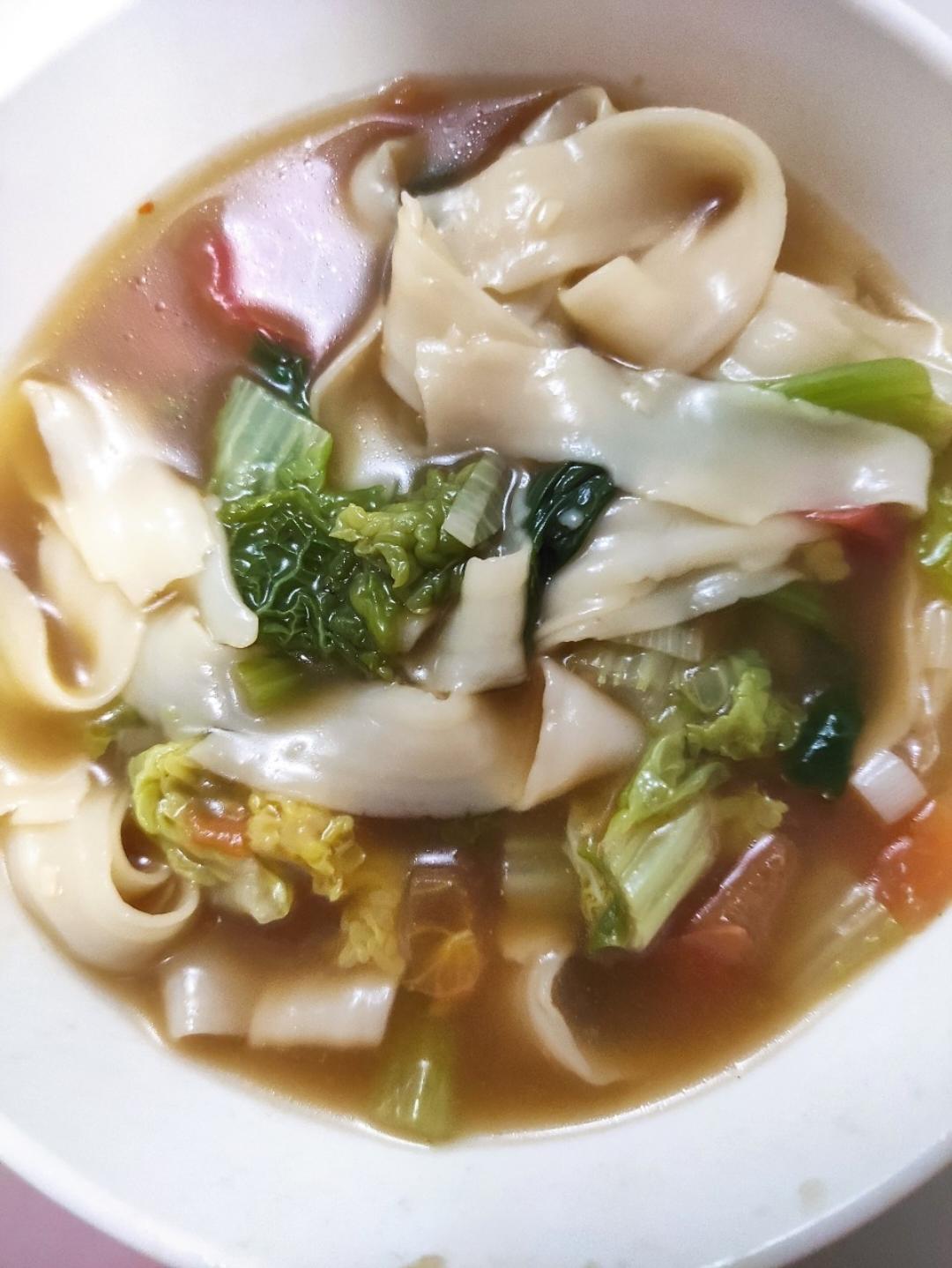 今天10号周三,风大降温了,晚上吃的刀削面,烤肠和小酥肉,还有凉拌黄瓜