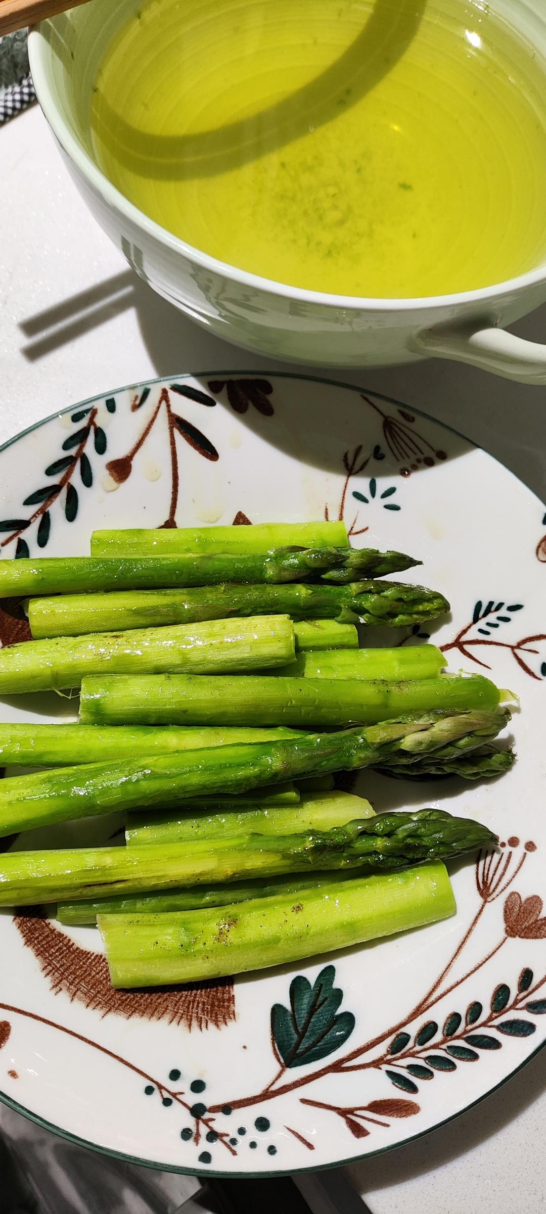 馋芦笋好几天了,终于十几块大洋买了一小把。笋皮汤+煎芦笋,只放了油盐黑胡椒,美味。芦笋我削皮削多了,其实只用削掉底部老的...