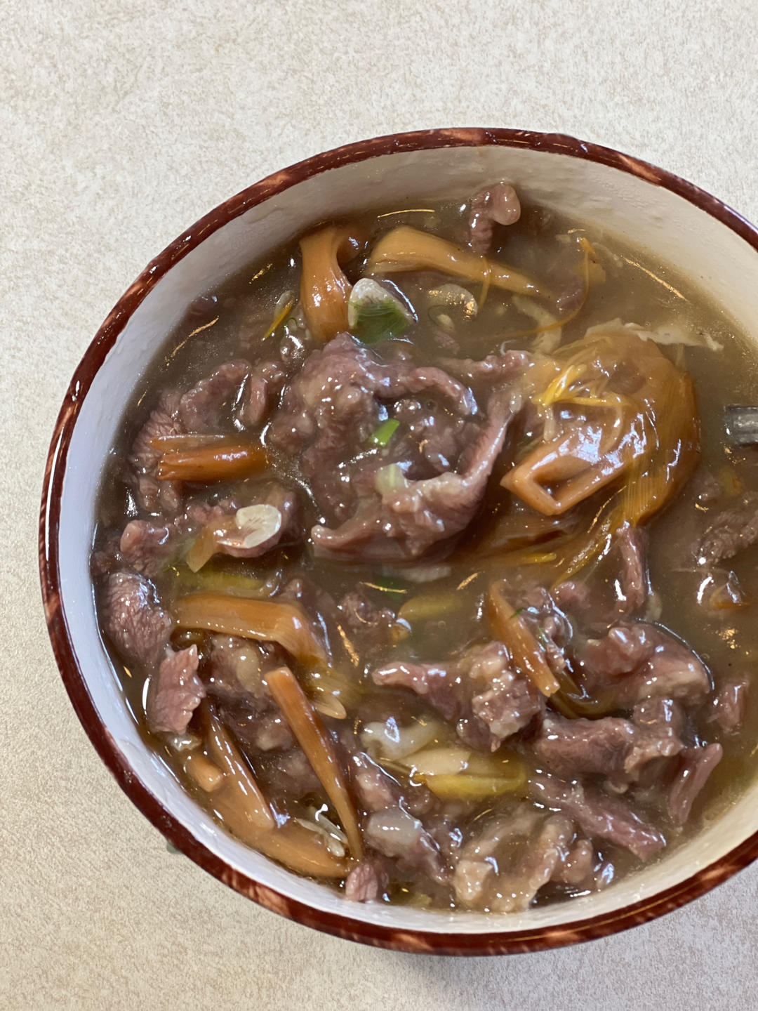牛肉羹又快又简单,很好吃!我用的玉米淀粉代替红薯粉,注意一定要用瘦的肉,带点肥的会有点腻,并且一定要多放生姜去腥,还有胡...