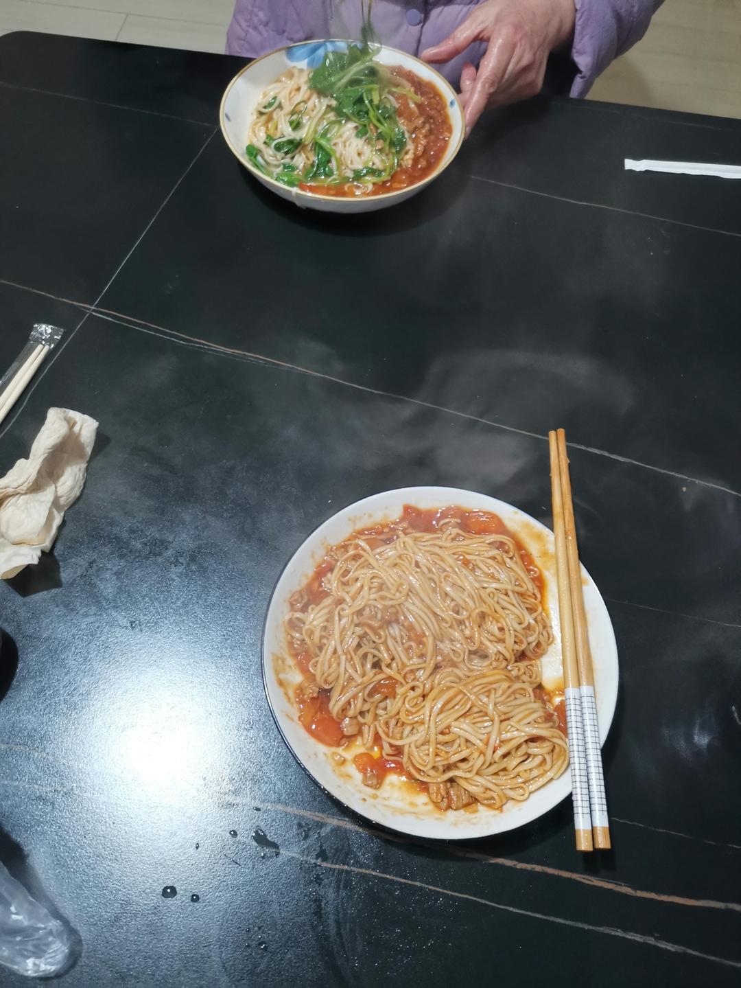 番茄肉酱面!味道不错,但口感还差点,因为水淀粉给多了点,肉应该用五花肉,肉给少了。👍 👍 👍#晚餐•2024年2月18日...