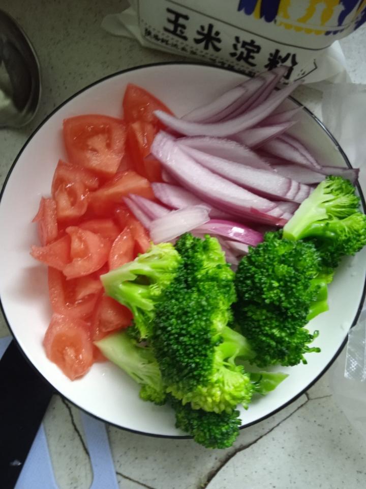 西蓝花和意面一起煮,放盐,节省时间...