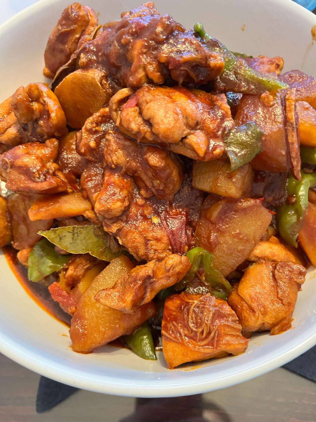 今天晚饭:Costco鸡腿肉做的大盘鸡,豆豉鲮鱼油麦菜,也不是油麦菜,是Costco的...