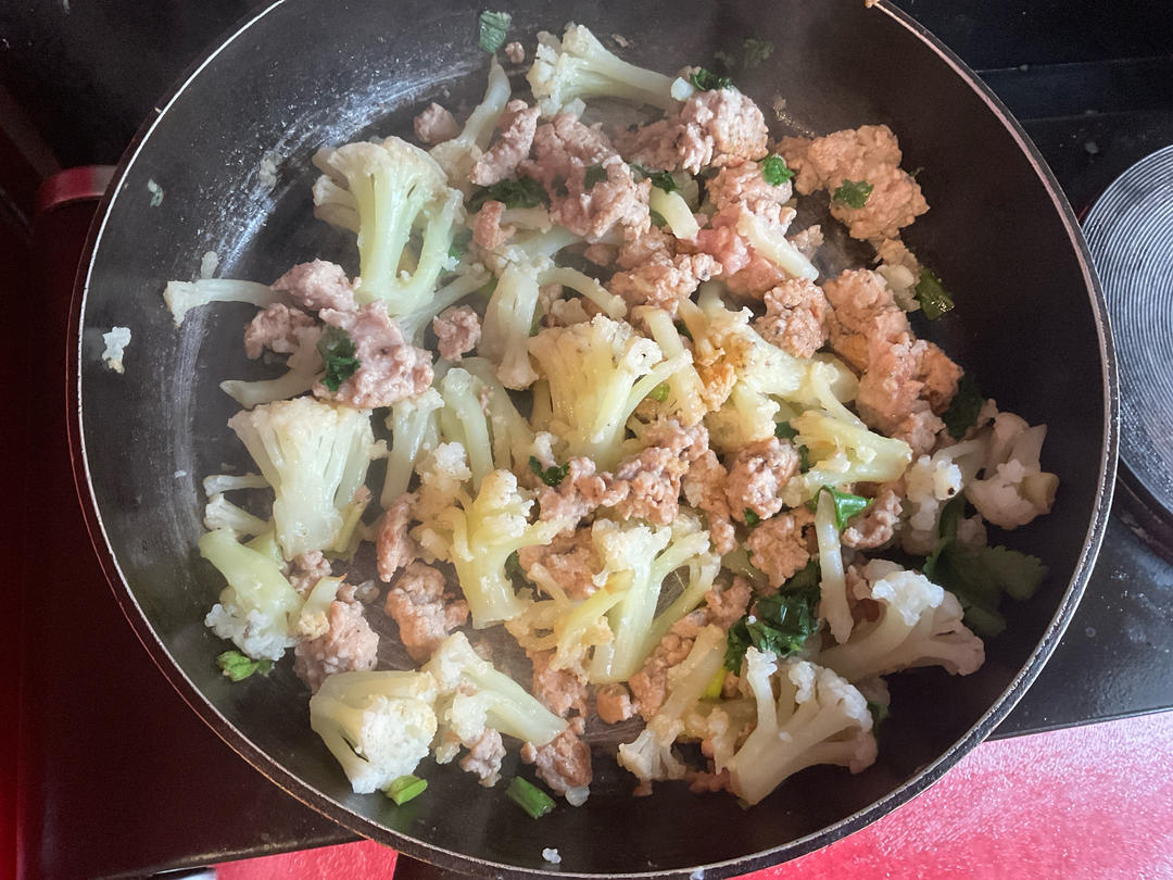 好久没吃菜花了,火鸡肉沫炒一下