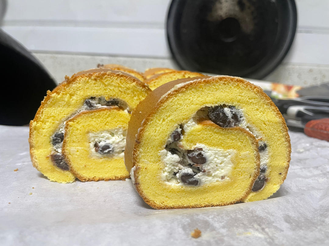 爱了爱了,浓浓的鸡蛋味,加了蜜豆和奶油,这次裹的不是很紧、有点松松的