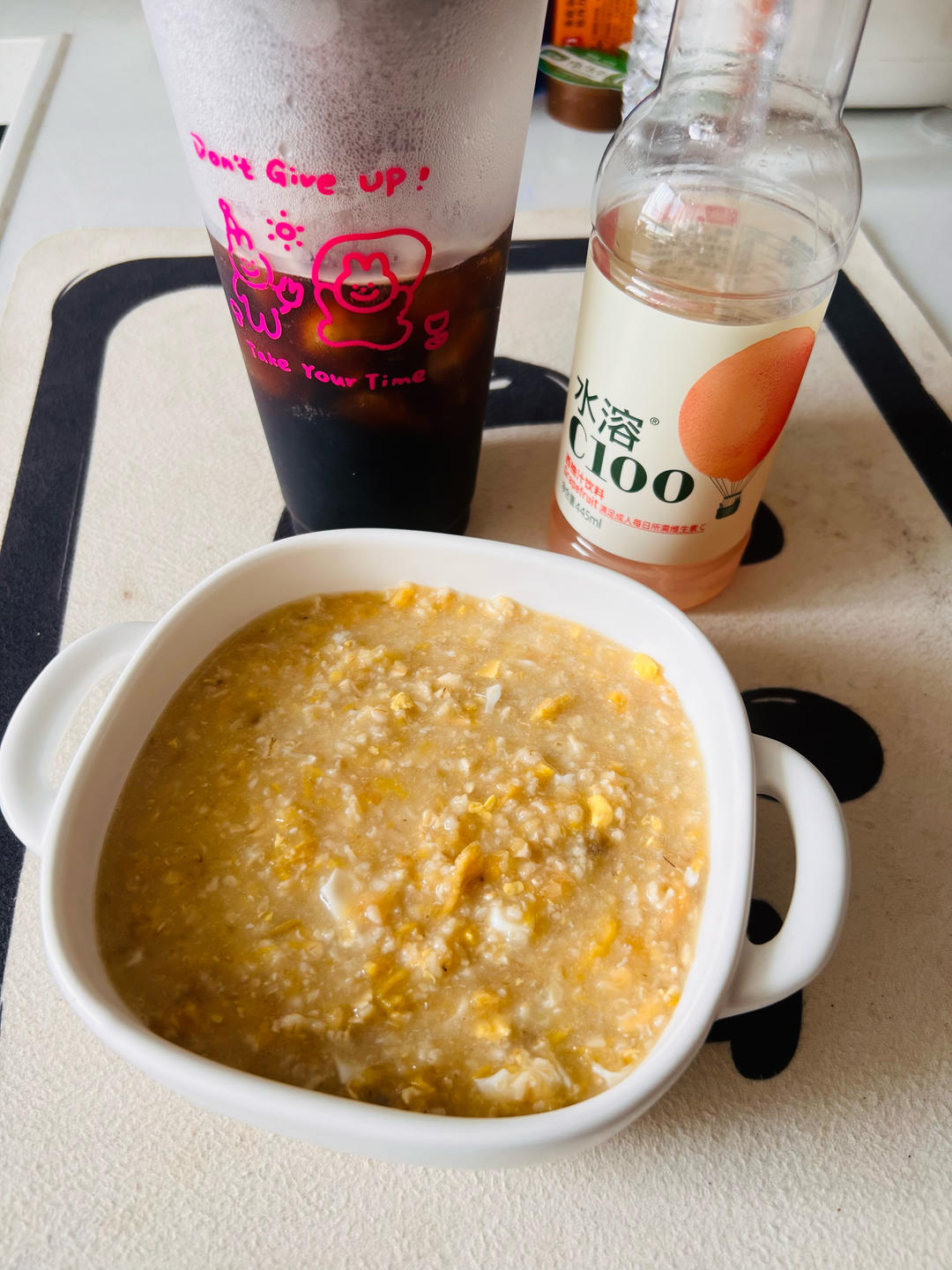 西柚冰美式,红薯燕麦粥,加了点椰子脆片