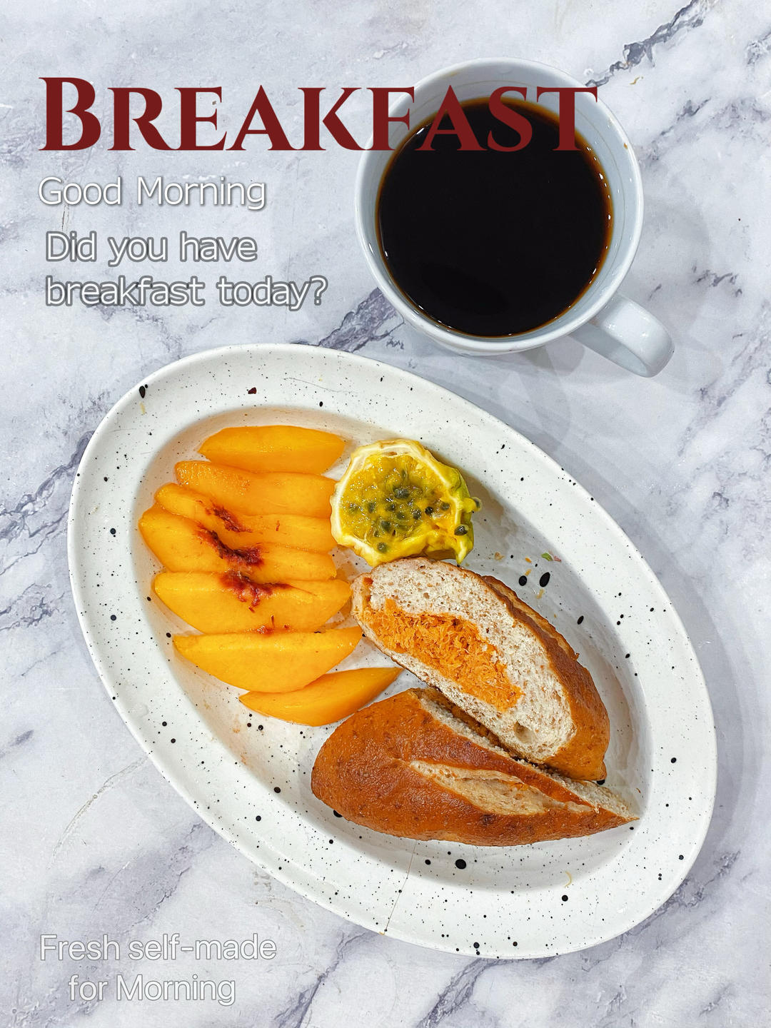 早:☕西梅美式🍑🥖全麦肉松碱水棒