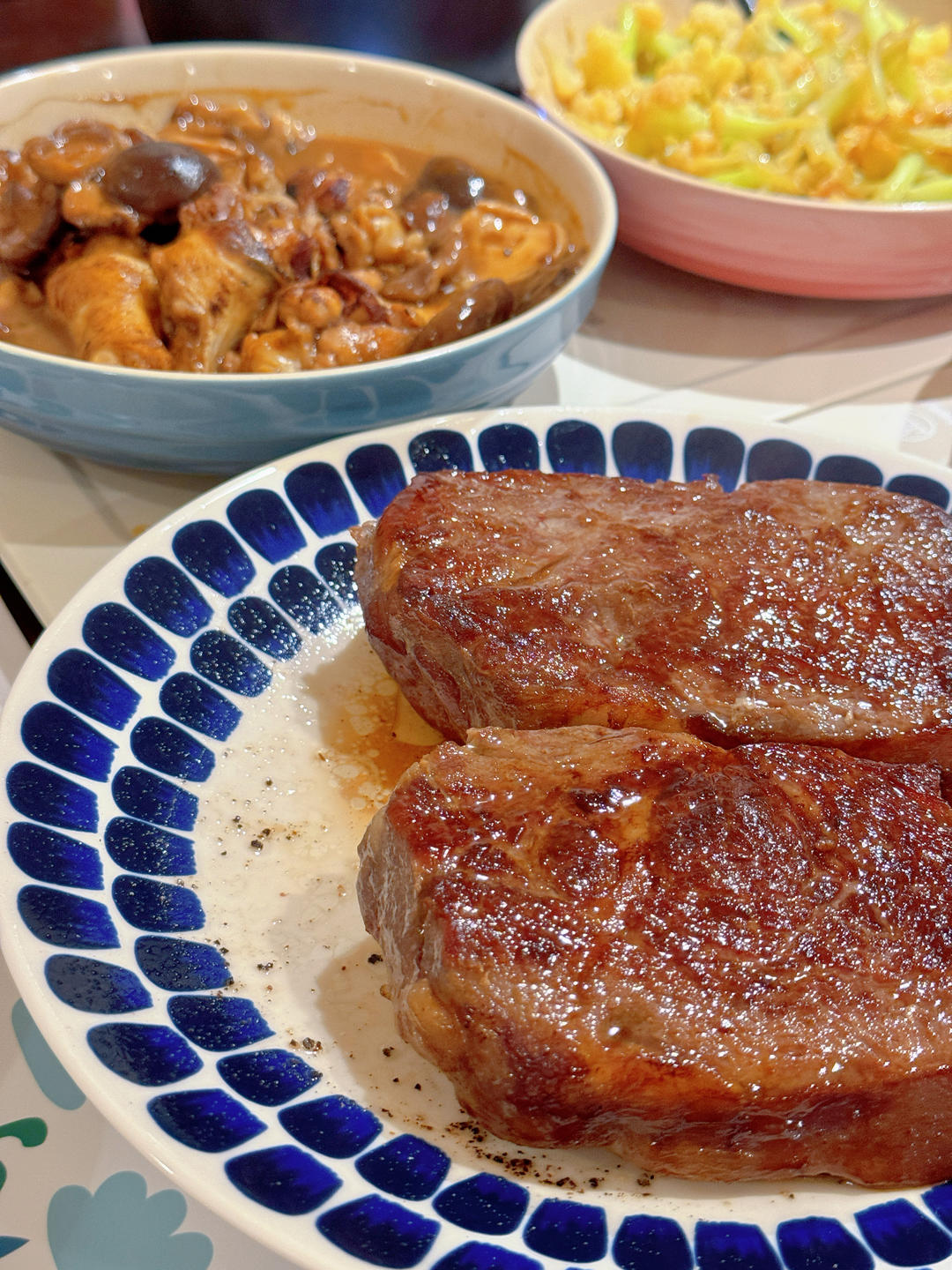 今天的两块牛排小,所以还得做个小鸡炖蘑菇🙂🙂🙂