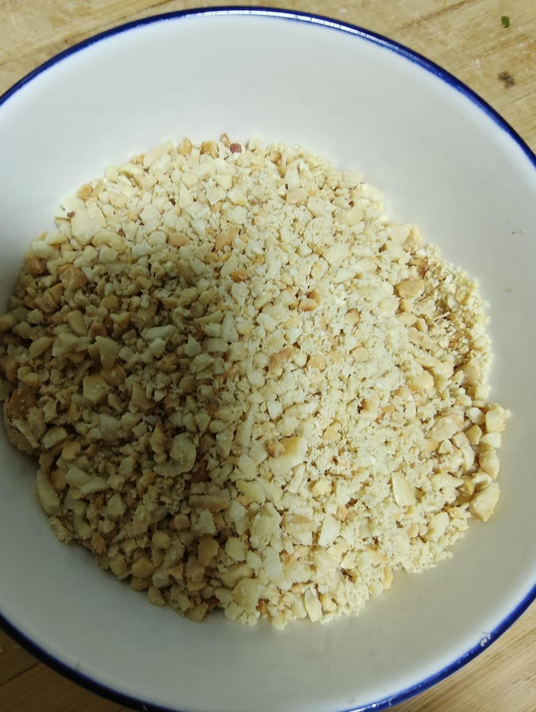 花生和核桃一起烤的,核桃糊了,扔了,芝麻是买的熟的,喜欢吃颗粒大点的,就用擀面杖擀碎,用的羊油炒的,放糖,香甜可口,晚上...