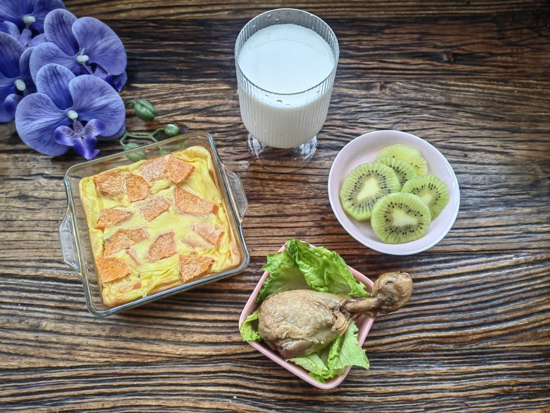 牛奶🥛+番薯克拉芙缇🍠+鸡腿🍗+猕猴桃🥝
