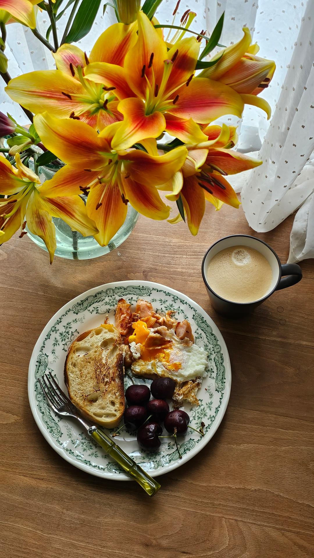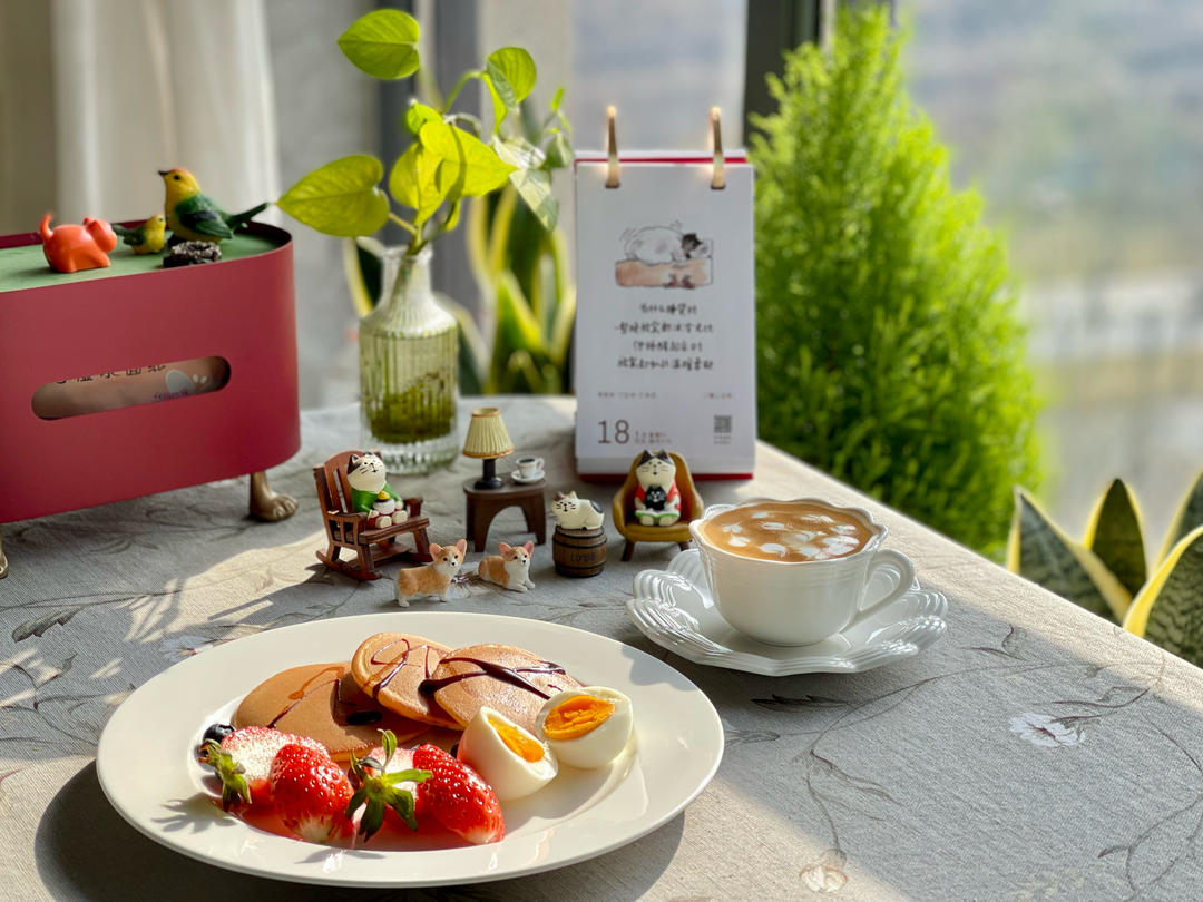 阳光中弥漫着枫糖松饼🥞和咖啡☕️的香气😋