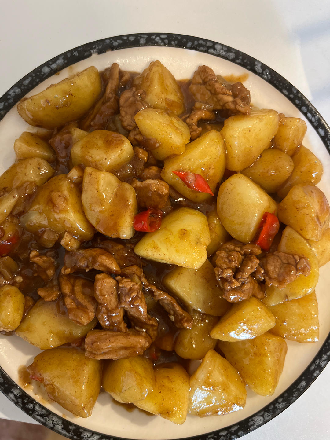 加了点辣椒和肉丝,没有葱花卖相就没那么好~