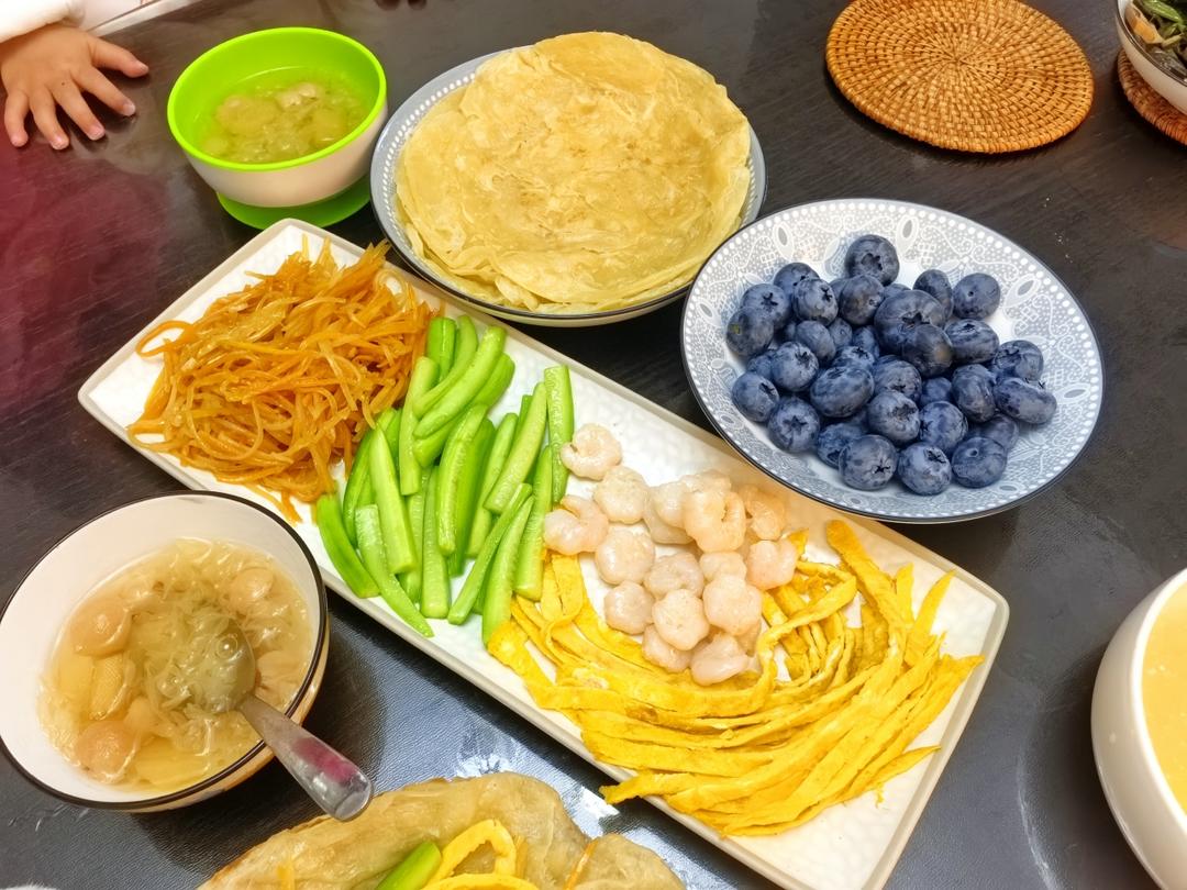 好久没做早餐了,卷饼搭配了各种配菜,银耳汤