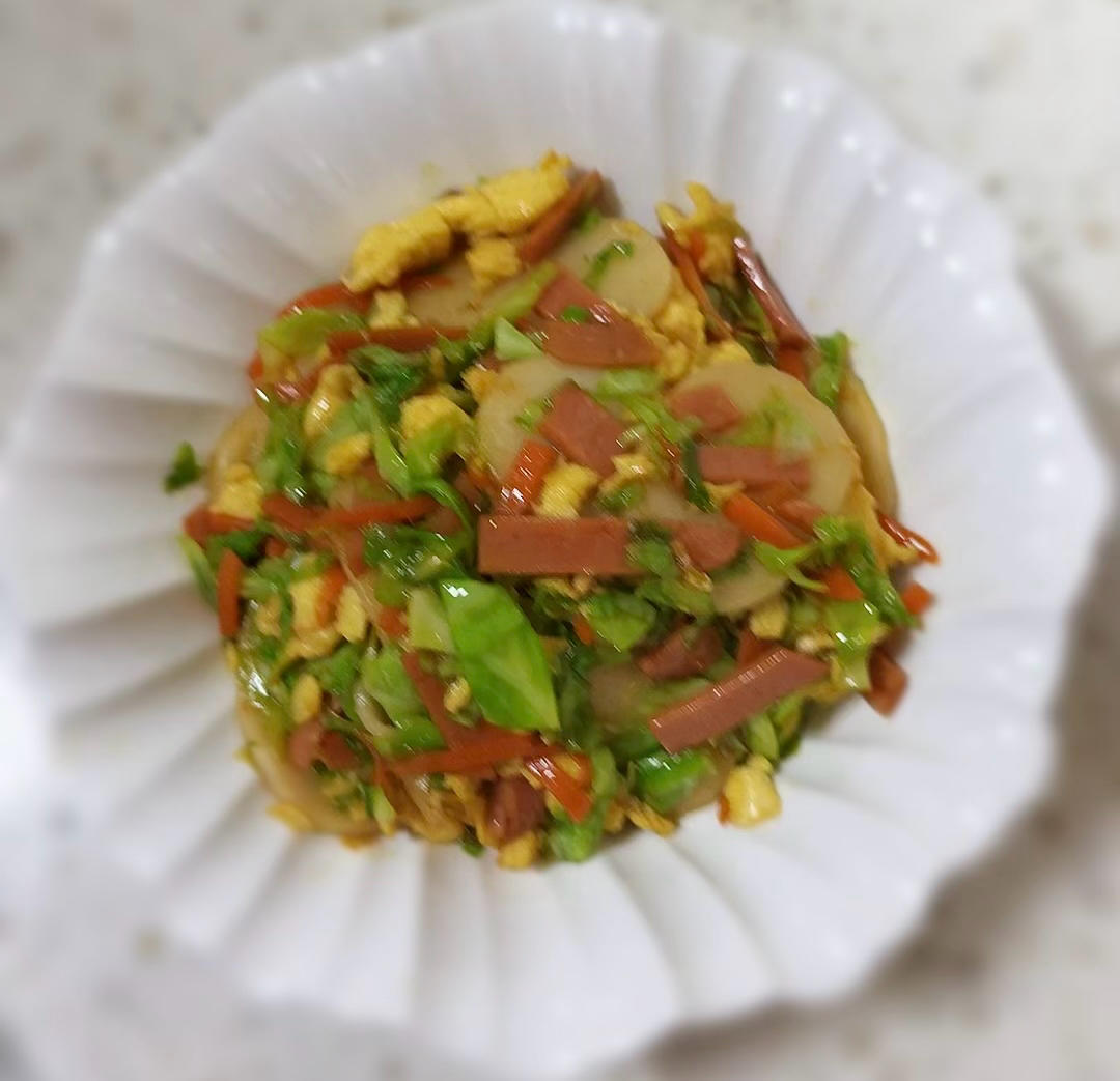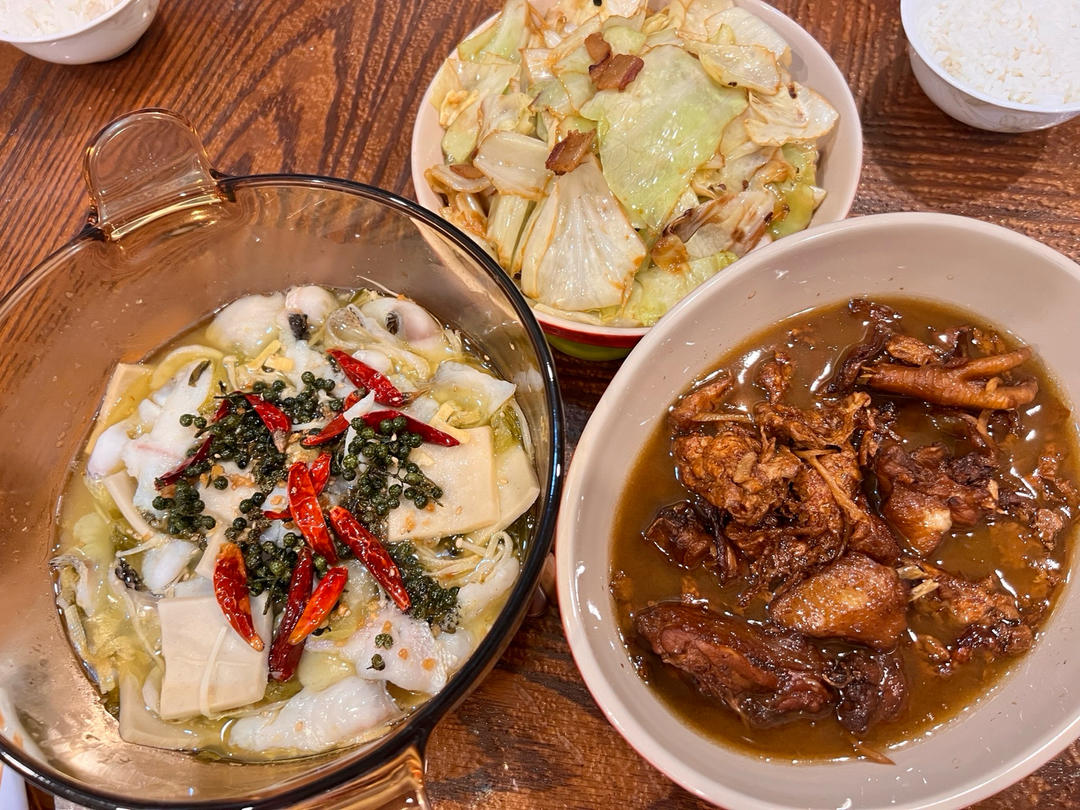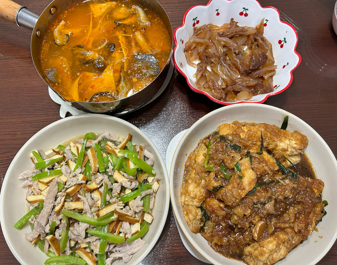 香干青椒肉丝 面拖捏腾鱼 海蜇头 大杂烩糟粕汤