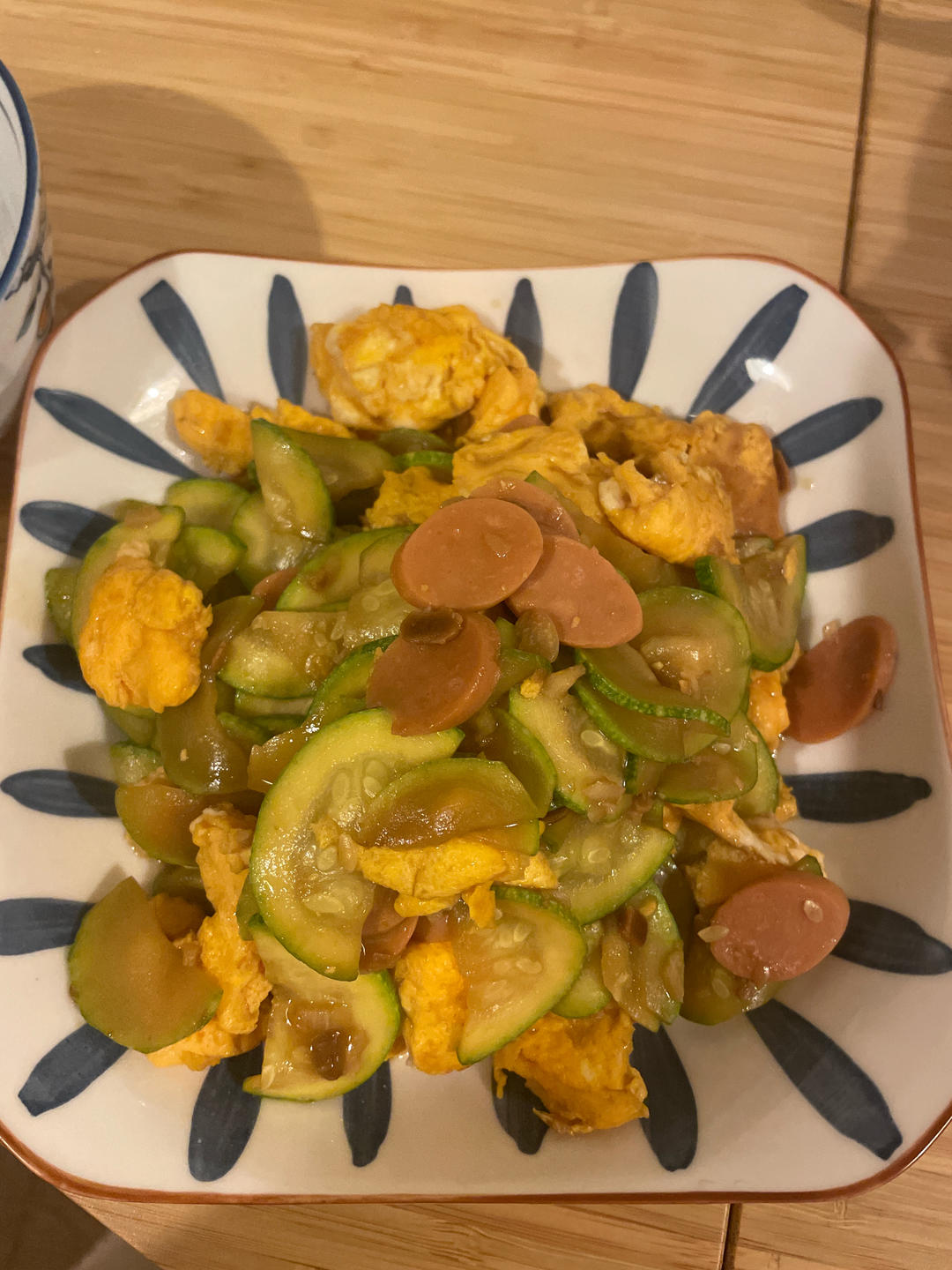 没放木耳 也没焯水西葫芦 不过切得很薄 而且炒了比较久 味道蛮好