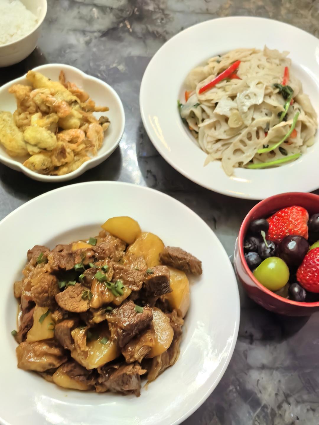把早上拿出来解冻的牛肉烧...