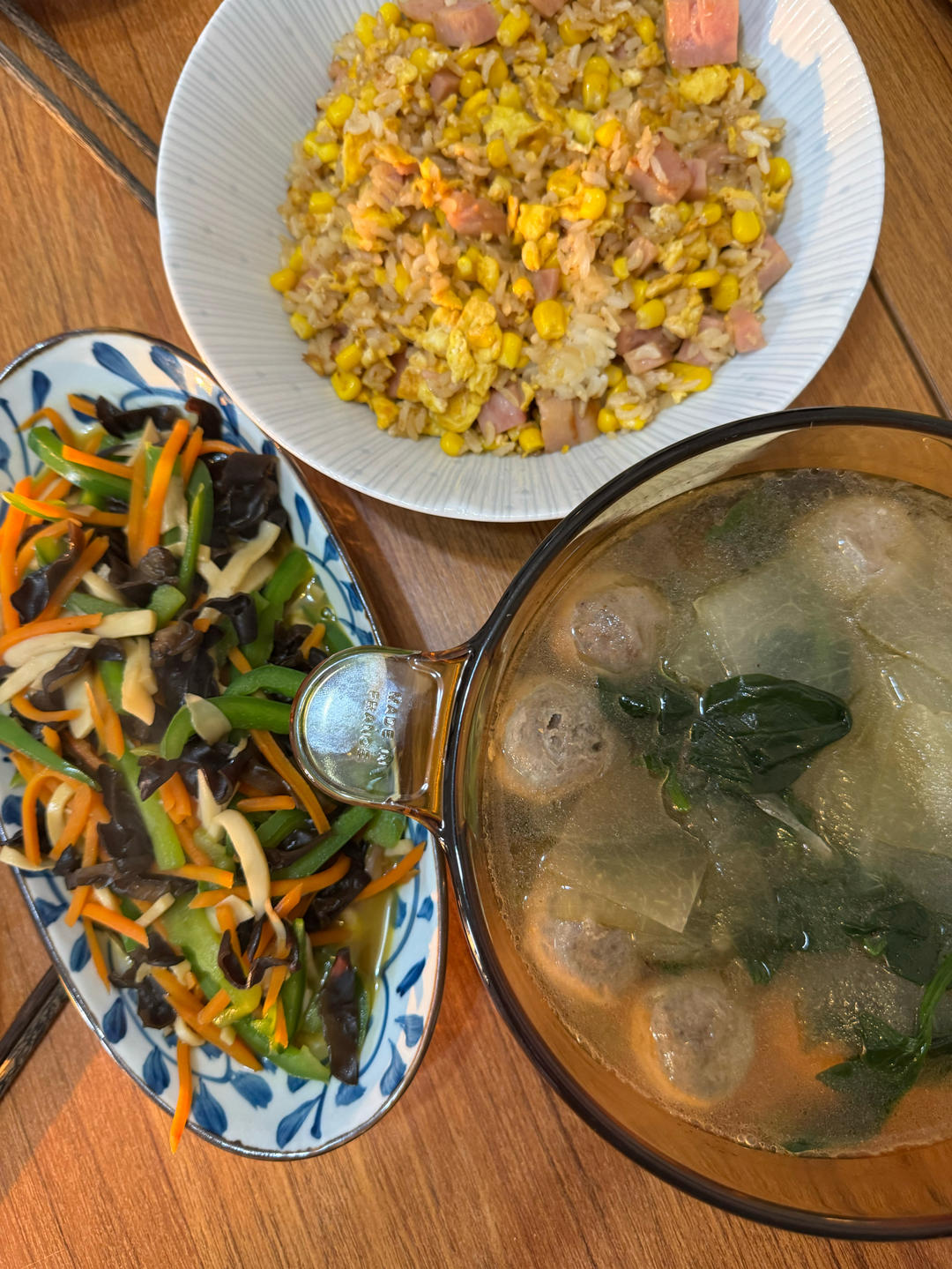 剩一口加了鸡蛋玉米和午餐肉炒饭挺好!